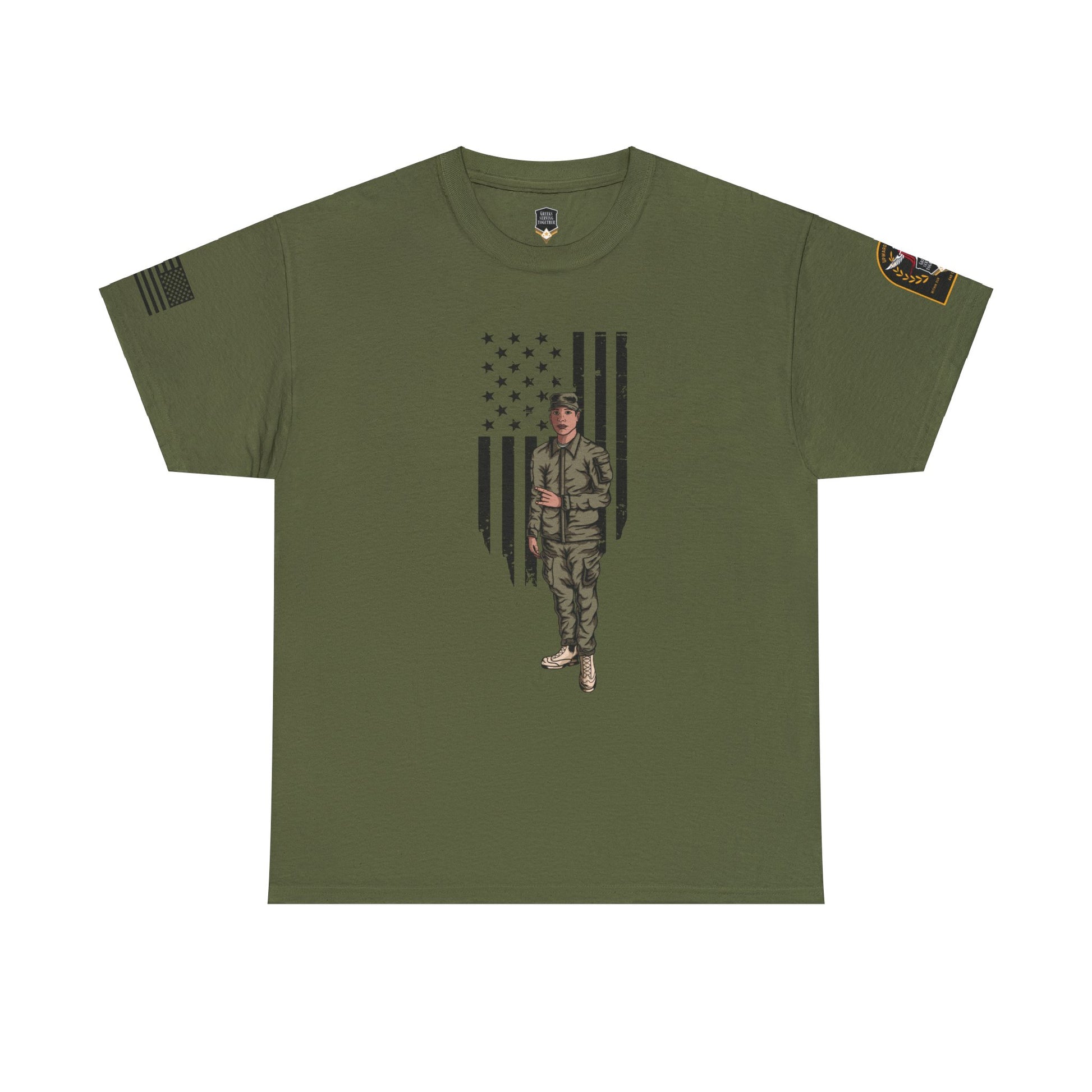 The shirt features an original GST military design on the front, the veterans branch of service on the back, and the flag and the GST insignia on the sleeves.